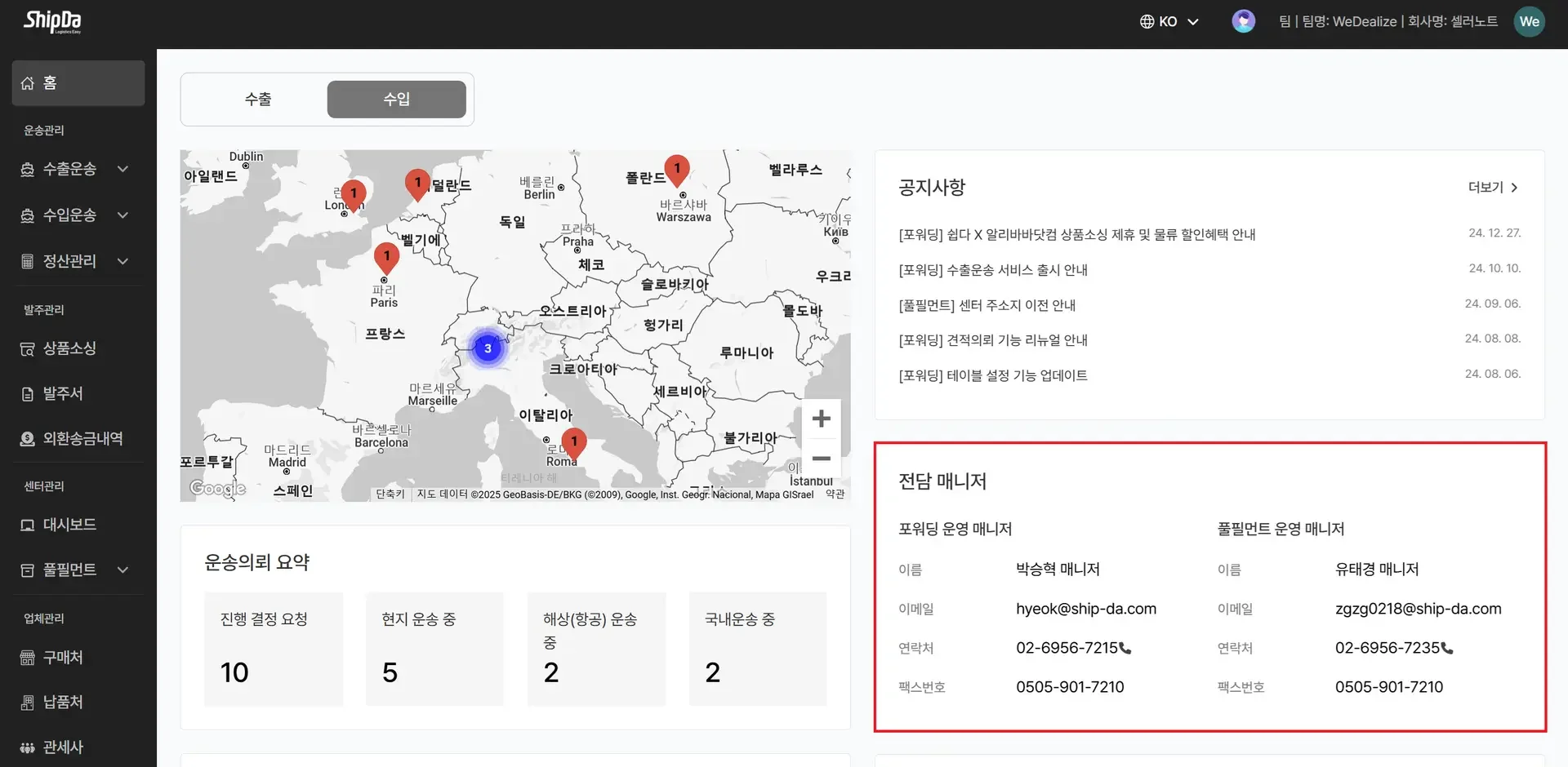 🌄팀 동료 혹은 거래처와 수출입 운송현황을 공유해요