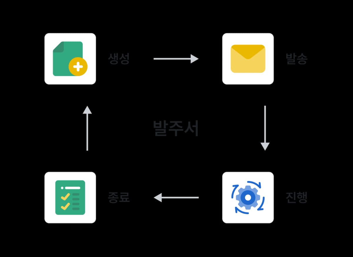 발주서는 생성 → 발송 → 진행 → 종료까지