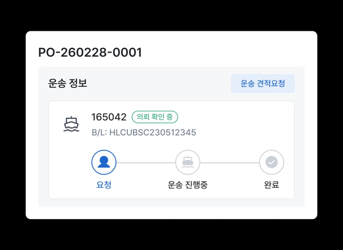 발주서 기준으로 운송 의뢰 및 현황을 관리할 수 있습니다.